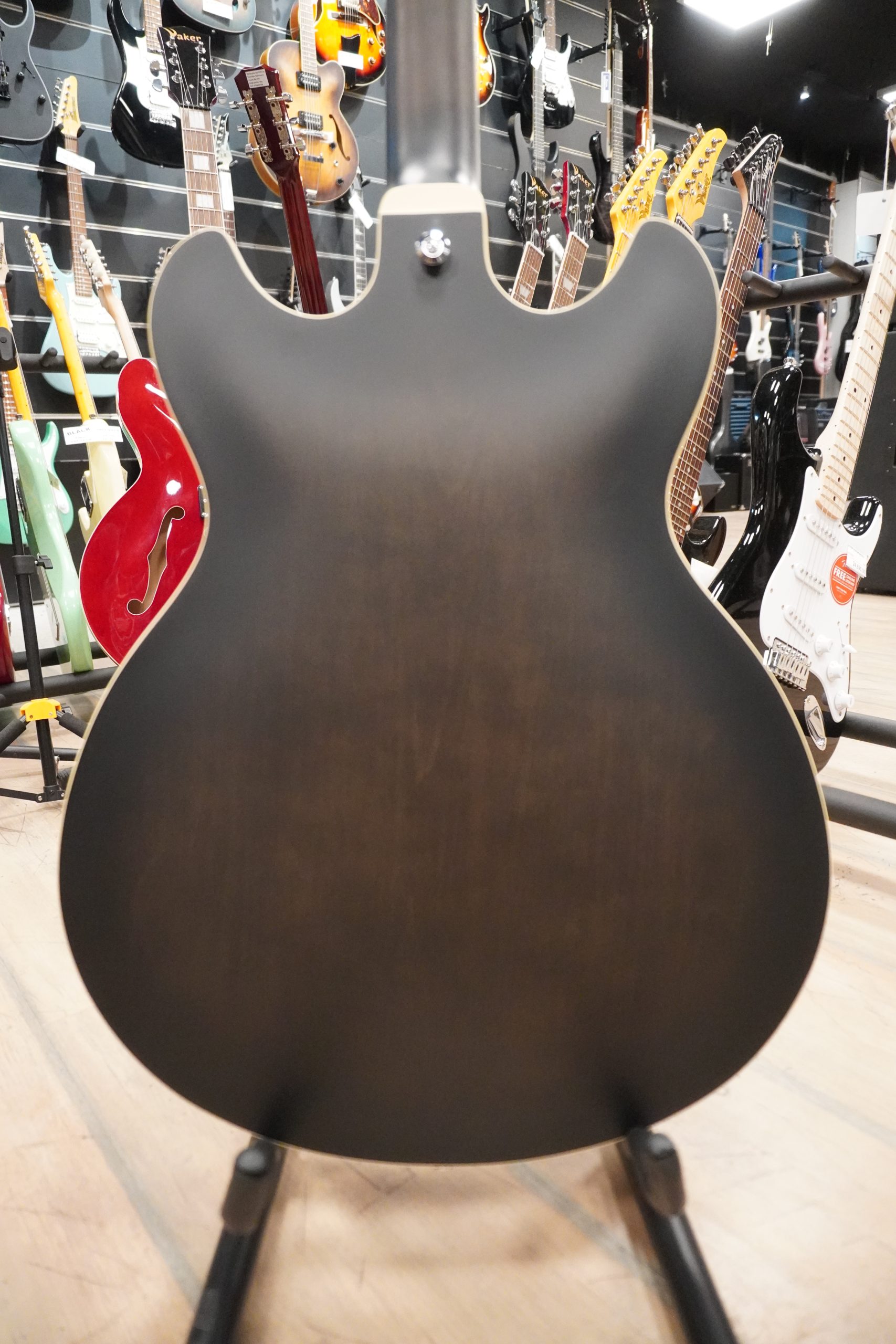 Ibanez AS53-TKF je deo ARTCORE serije i poseduje polusuplje telo sa F otvorima i dva roga, što joj daje prepoznatljiv izgled i klasičan karakter. Fino oblikovane konture i ergonomija tela omogućavaju maksimalnu udobnost prilikom sviranja, čak i tokom dužih muzičkih sesija. Ovaj model kombinuje vizuelnu eleganciju i funkcionalnost, što ga čini omiljenim izborom iskusnih muzičara.