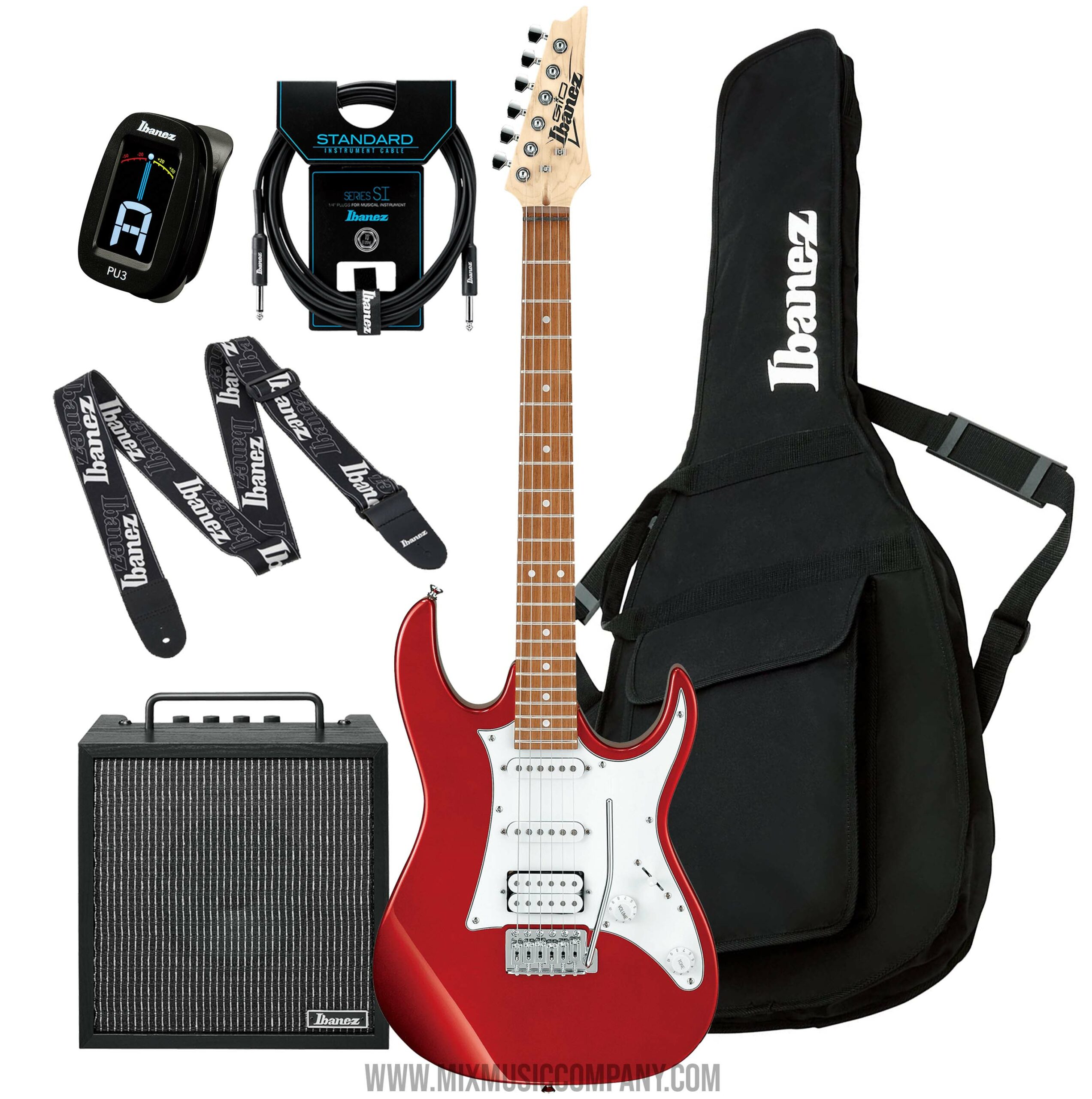Ibanez GRX40-CA paket je najkvalitetnija opcija za kupovinu prve gitare. O GRX40 gitarama ne treba trošiti puno reči. Sa dva singla i hambakerom mogućnosti sviranja svakog tona je neograničen. Od trvđeg zvuka do čistih tonova. IBZ10G pojačalo sadrži 10w prave snage i zvučnik od 6.5 inča. Klin i dostortion kanal pružaju kvalitetan ton upakovan u drvenu kutiju. Od potenciometra tu su i bass middle i treble za podešavanje nijansi zvuka. Kvalitetan štimer kaiš i torba su neophodni svakom gitaristi baš kao i kabl, pa uz ovaj paket dobijate gratis: PU3 štimer, IGB101 futrolu, SI10 kabl i GSD50-p6 kaiš.