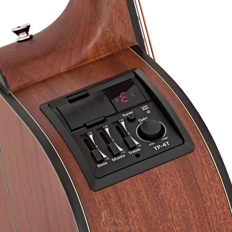 Ozvuka: Takamine GD11MCE-NS ima pickup sistem Takamine TP4T preamp sa ugradjenim stimerom.Napajanje preampa je sa baterijom od 9V.